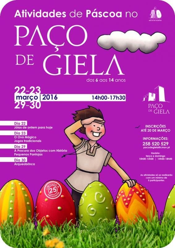 Nos dias 22, 23, 29 e 30 de Março há atividades de Páscoa para os mais novos, dos 6 aos 14 anos de idades, no Paço de Giela.