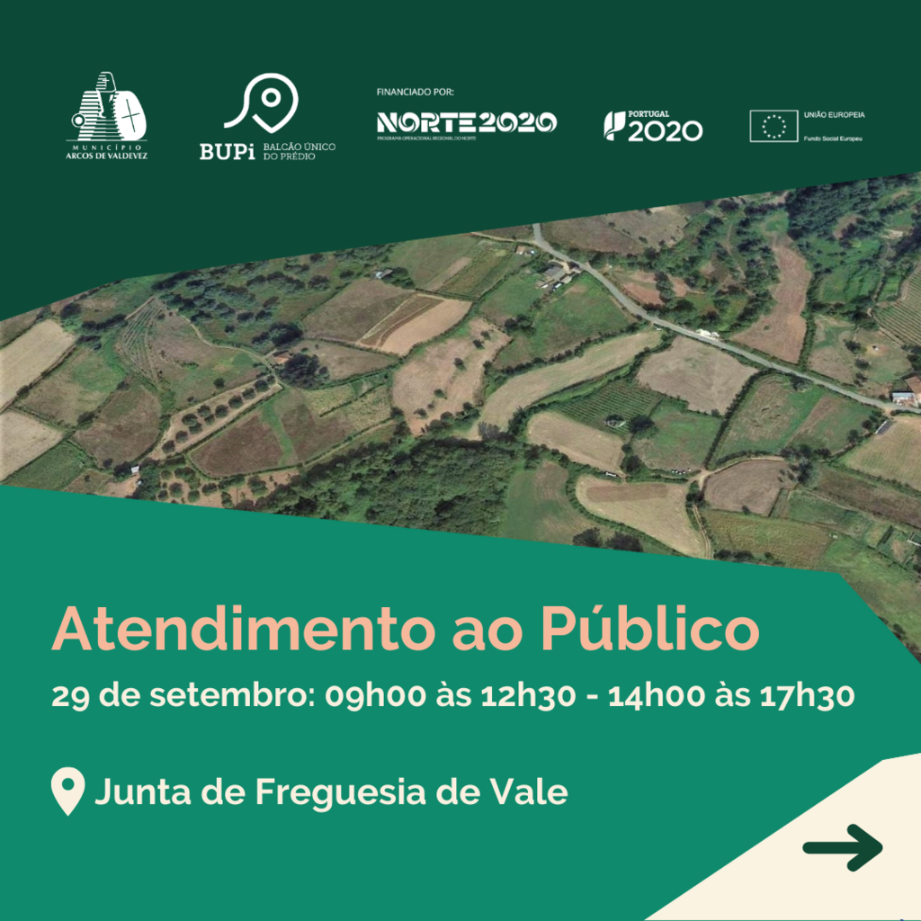 O BUPi encontra-se no Balcão Único disponível na sede da Junta de freguesia do Vale, no dia 29 de setembro, com uma equipa destinada a atendimento ao público.