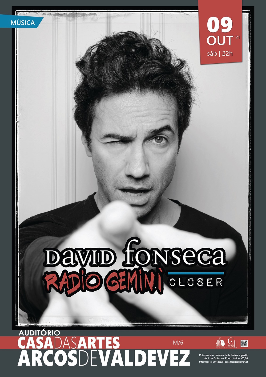Pré-venda / reserva de bilhetes a partir de 4 de Outubro, preço único: 6 euros.