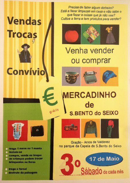 Vai decorrer no próximo dia 17 de maio, o 2º mercadinho de S Bento do Seixo.
