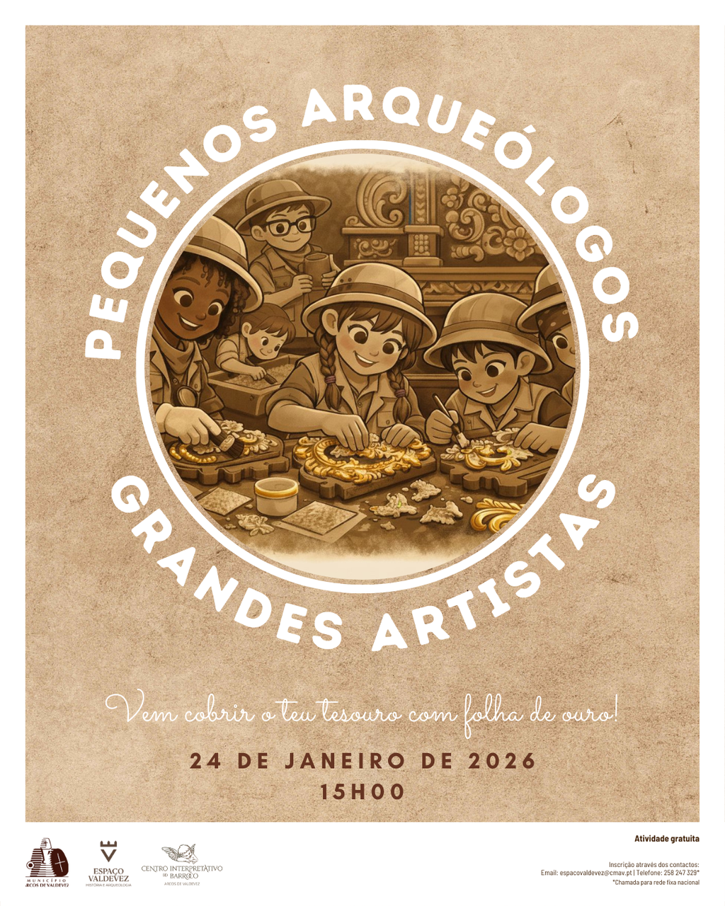 Uma oportunidade de juntar história e arte, numa experiência onde as crianças se irão transformar em detetives do tempo e mestres da talha dourada!