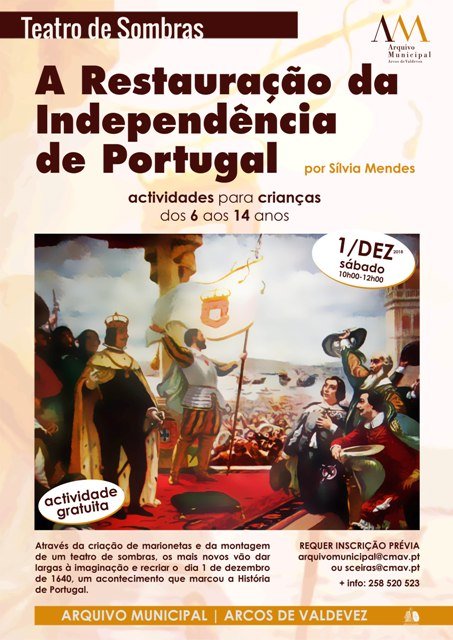 Através da criação de marionetas e da montagem de um teatro de sombras, os mais novos vão dar largas à imaginação e recriar o dia 1 de dezembro de 1640, um acontecimento que marcou a História de Portugal.