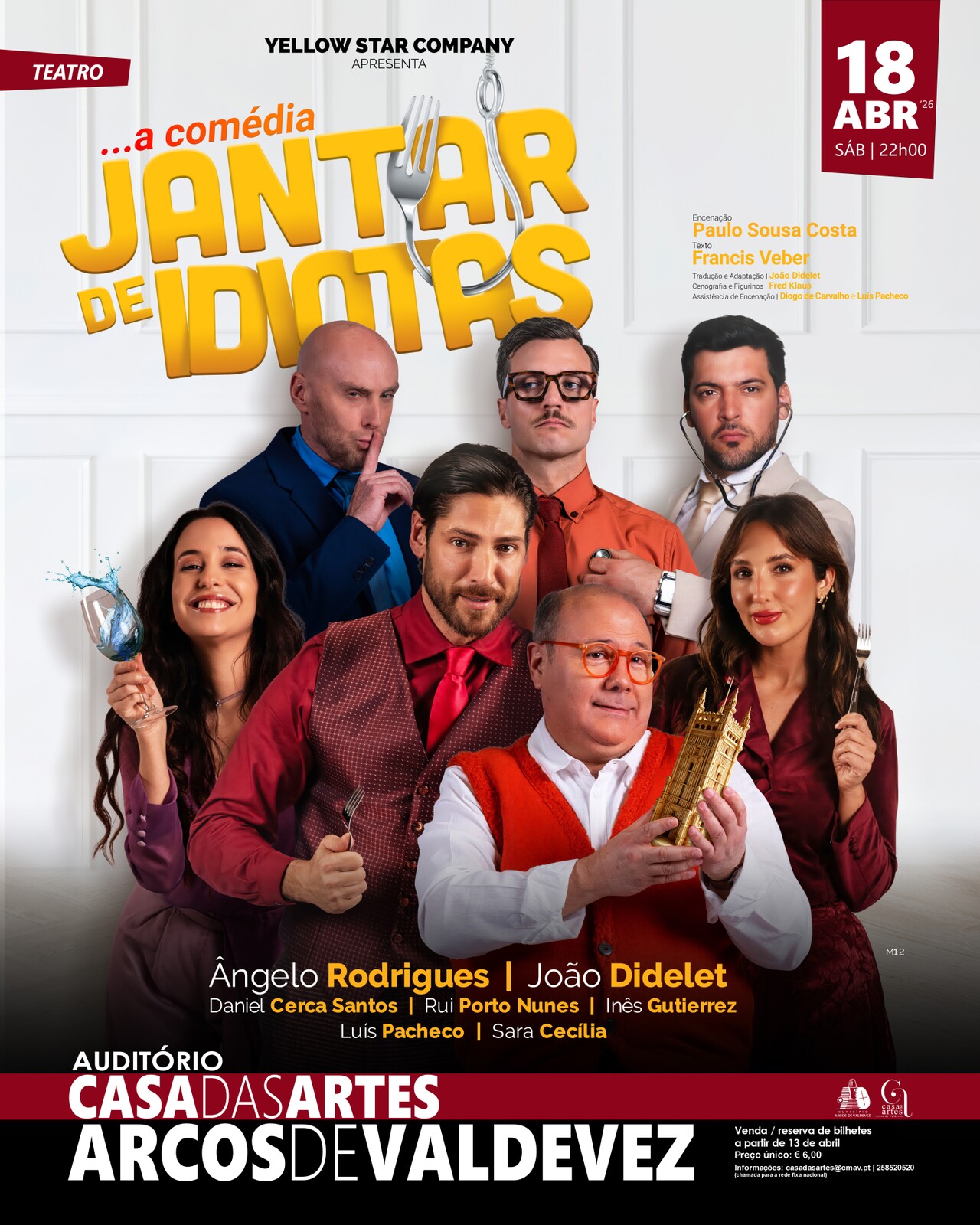 “Jantar de Idiotas” é uma comédia de costumes escrita pelo dramaturgo norte-americano Francis Veber e encenada por Paulo Sousa Costa, com interpretações, entre outros, de Ângelo Rodrigues e João Didelet.