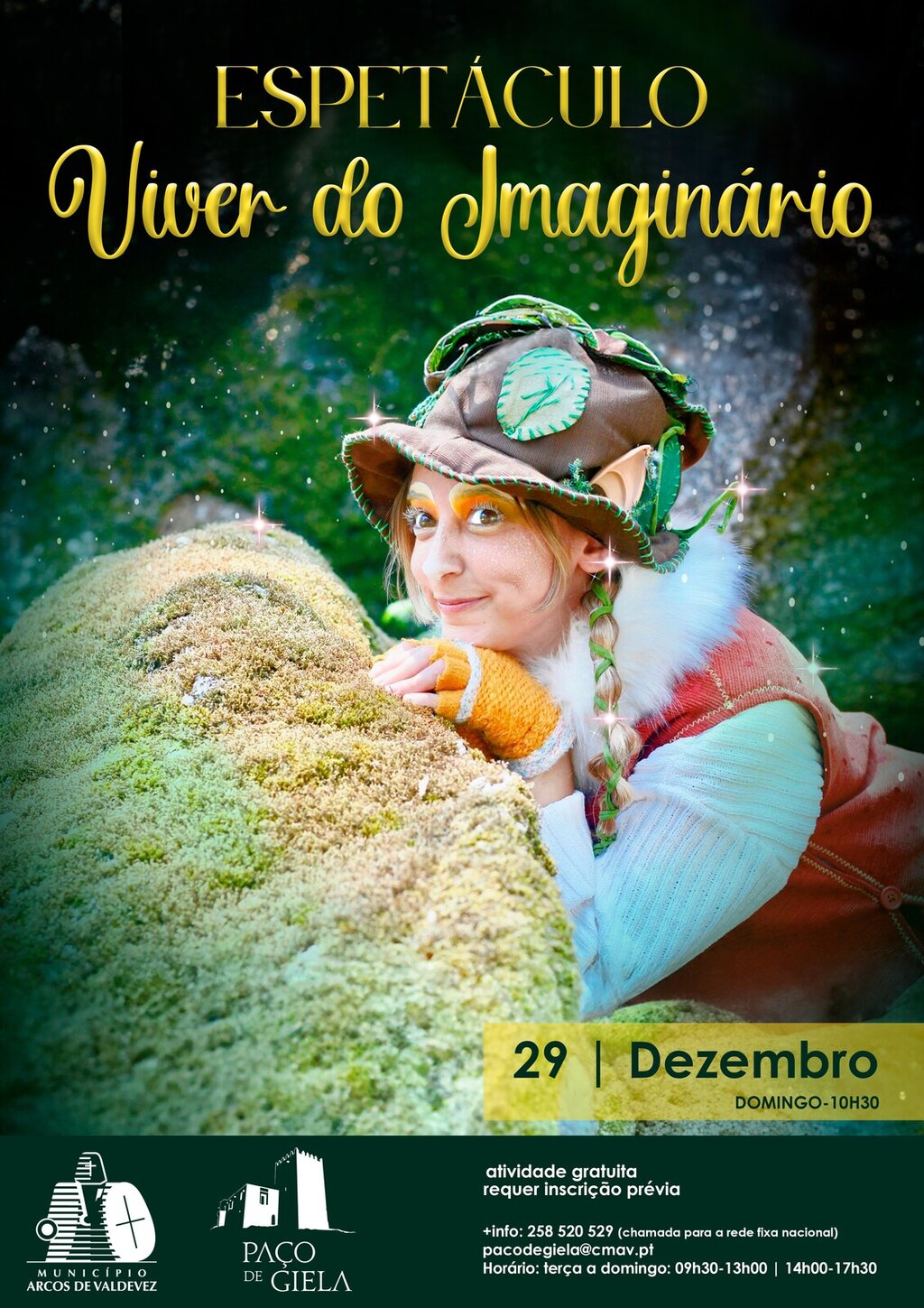 Adicionar a calendário 2024-12-29 10:30:00 2024-12-29 12:30:00 Europe/Lisbon Espectáculo “Viver do Imaginário” Paço de Giela Paço de Giela