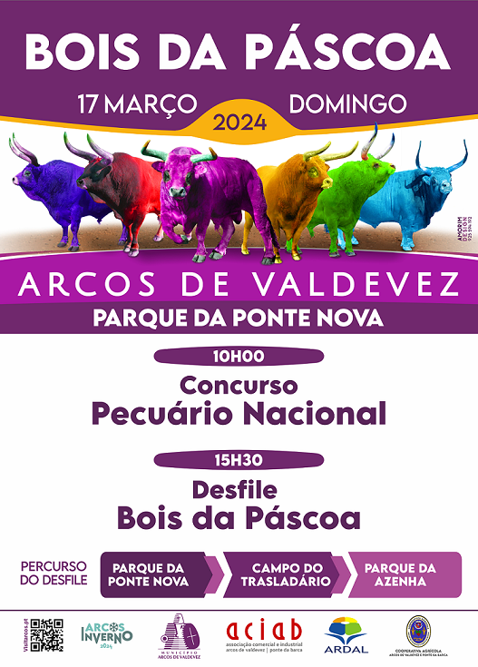 Esta iniciativa tem início no domingo, 17 de março, com a exposição de Gado Bovino e Carros de Bois. O Concurso Pecuário Nacional, tem inicio pelas 10h00, no Parque da Ponte Nova e às 15h30 decorrerá o tradicional Desfile dos Bois da Páscoa, dos Carros de Bois e das Rusgas e Ranchos Folclóricos pelas principais artérias da Vila.