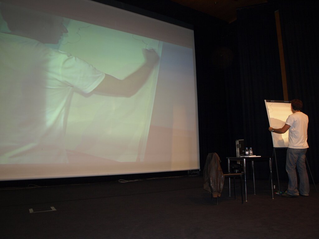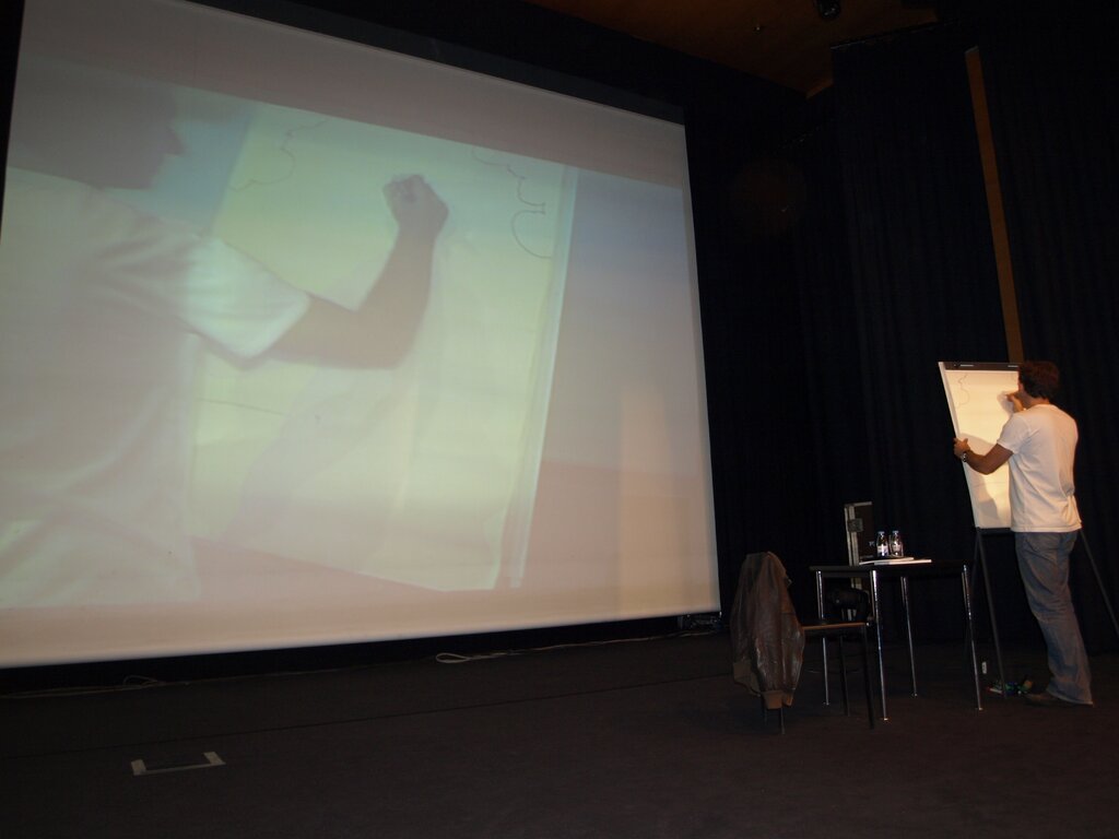 O escritor/ilustrador teve ainda a oportunidade de falar um pouco sobre si próprio e a sua forma de escrever, bem como esclarecer em vários aspectos as mentes mais curiosas que se encontravam na plateia. Do público surgiram questões como por exemplo quanto tempo demora a criar as suas obras ou de onde lhe surge a inspiração. Curiosidades que foram prontamente satisfeitas, chegando a afirmar que "é um agrado poder conversar com os alunos porque têm uma grande capacidade de criar e imaginar".