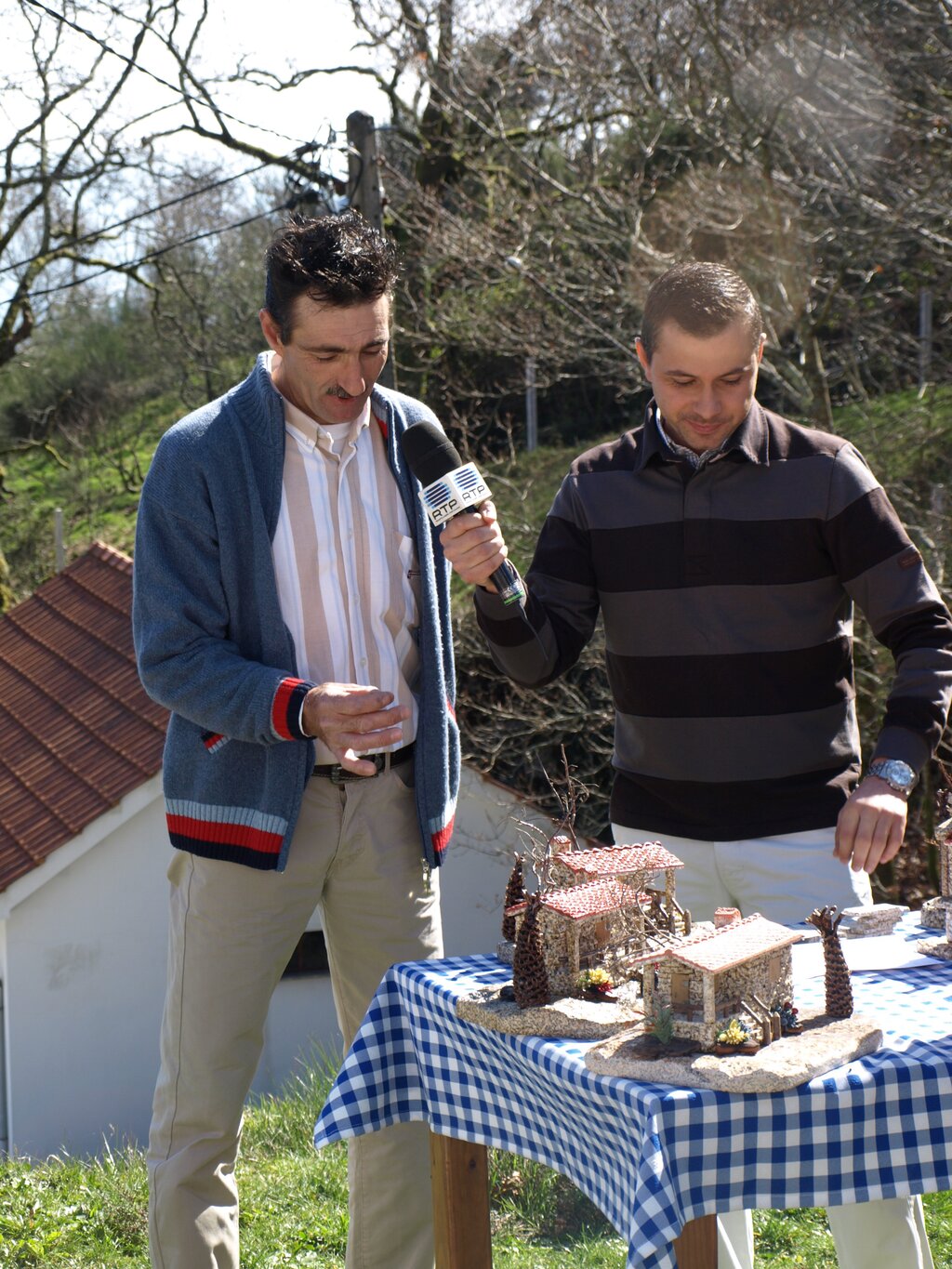 De seguida, Hélder Reis, apresentador do programa, falou com Carlos Alberto Rodrigues. Também, ele, um artesão da terra que se dedica à feitura de exemplares miniatura de espigueiros e casinhas em pedra e explicou, por linhas ténues, aos telespectadores como as confecciona.