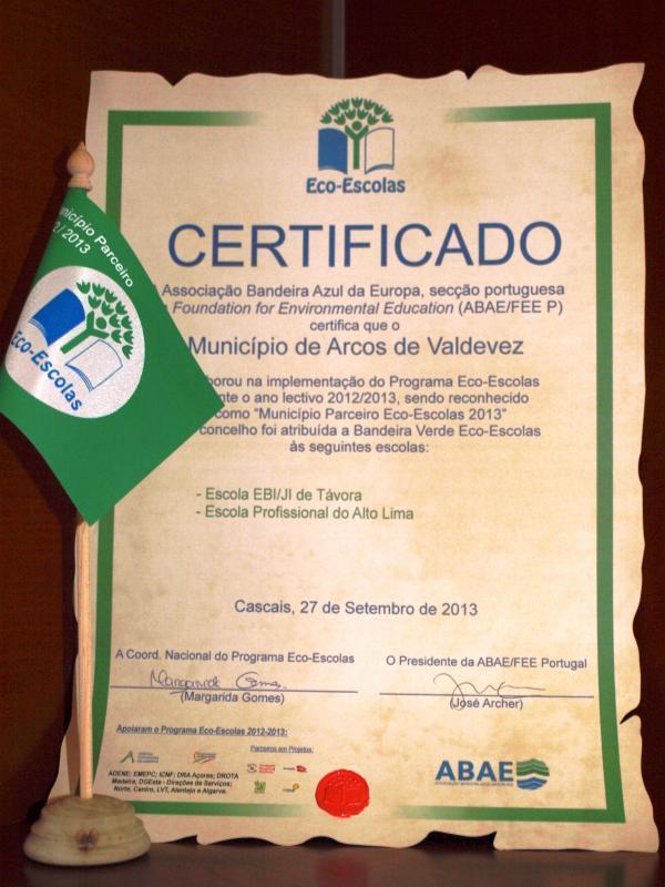 No ano letivo 2012/2013, foi atribuída a Bandeira Verde Eco Escolas à EPRALIMA e Escola EBI/JI de Távora, a quem o Município reconhece o trabalho efetuado e deixa um voto de incentivo à sua continuidade em todas as escolas do concelho.