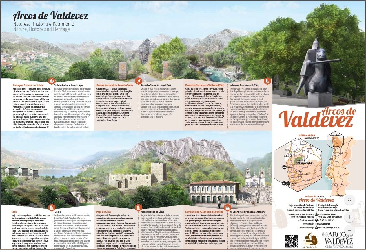 Como complemento, estas brochuras também referem os contactos da loja de Turismo Interativa da sede do concelho e do Posto de Informação e Turismo de Soajo.