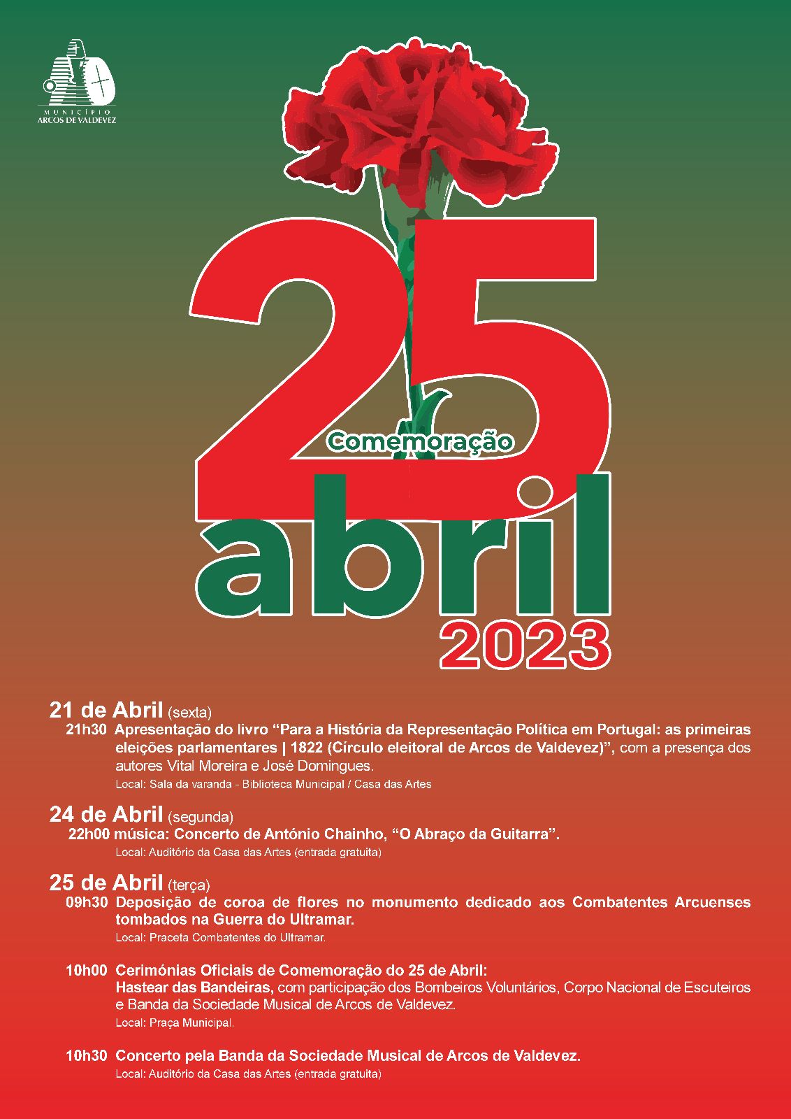 10h00 Cerimónias Oficiais de Comemoração do 25 de Abril: