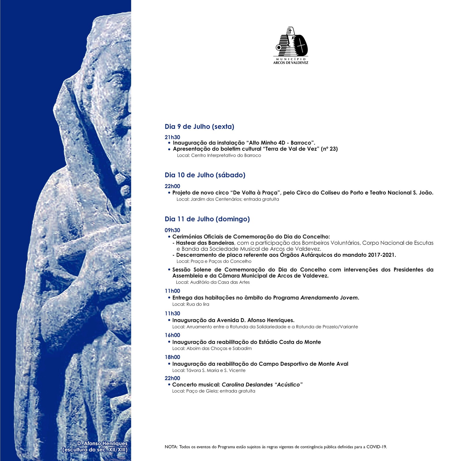 - Sessão Solene de Comemoração do Dia do Concelho, com intervenções dos Presidentes da Assembleia e da Câmara Municipal de Arcos de Valdevez.