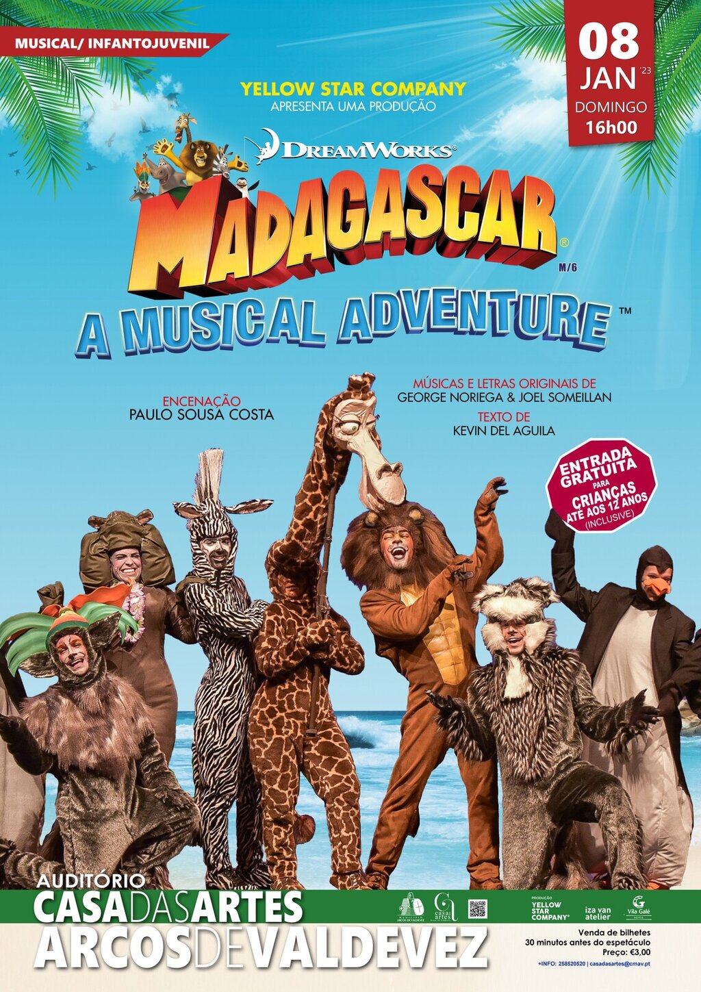 Finalmente chegou a Portugal a aventura musical de uma vida. Baseado no filme de animação da DreamWorks, Madagáscar, uma Aventura Musical, conta a história de um grupo de amigos inseparáveis, que escapam de sua casa no Jardim Zoológico do Central Park, em Nova Iorque, e deparam-se com uma viagem inesperada ao mundo insano de Madagáscar…
