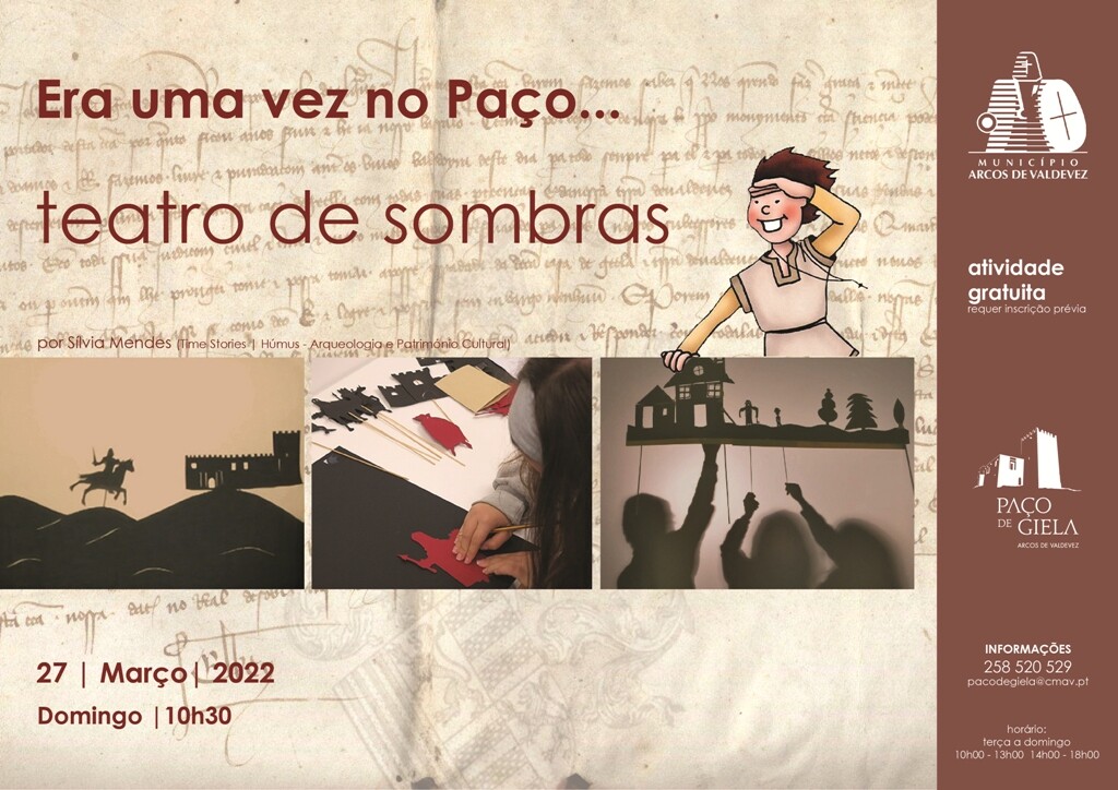 O Paço de Giela e a sua longa história servirá de inspiração para o espetáculo de luz e sombra que iremos criar com a ajuda de duas personagens muito divertidas, uma torre e um pássaro!