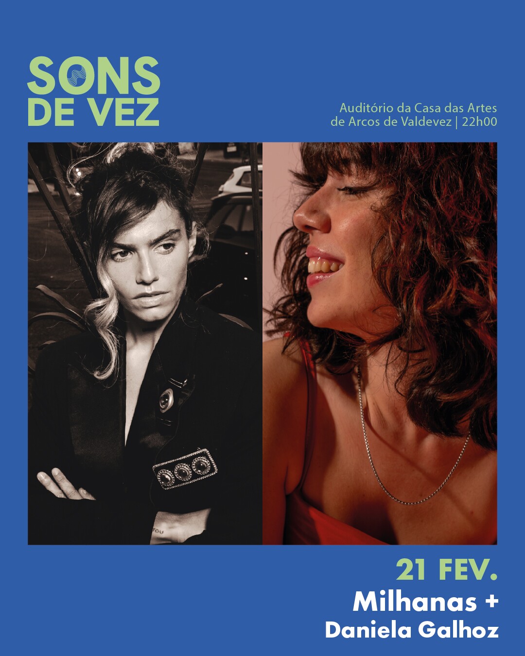 Milhanas, cantora e compositora portuguesa nascida em 2001, afirma-se como uma das vozes mais promissoras da nova geração. A sua música combina introspeção e autenticidade, cruzando influências do jazz, gospel e música moderna com uma forte ligação à literatura portuguesa, que inspira as suas letras poéticas e intensas. Depois da estreia com o tema “Lamentos”, em 2021, seguiram-se “Mais que ao Sol” e “Mundo”, culminando no álbum de estreia “De Sombra a Sombra” (2023), onde reflete sobre os desafios da alma sem cair na melancolia. Reconhecida pela crítica e pelo público, Milhanas foi nomeada para os Globos de Ouro de 2024 na categoria de Melhor Intérprete. Iniciou 2025 com dois concertos esgotados na Casa da Música e no CCB, encerrando o ciclo do seu disco com o tema “Apagar A Sombra”. A artista continua a expandir o seu universo criativo, prometendo novas obras que irão aprofundar ainda mais a sua identidade artística.