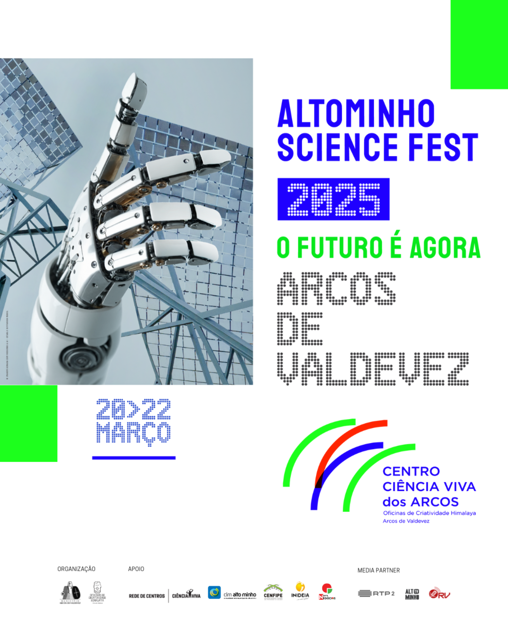 Arcos de Valdevez acolhe o evento ALTO MINHO SCIENCE FEST 2025: O FUTURO É AGORA! nos dias 20, 21 e 22 de março de 2025, nas instalações do Centro Ciência Viva dos Arcos-OCH.