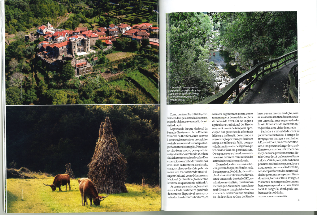 Referido como sendo um dos “segredos mais bem guardados do Minho”, a publicação faz referências à classificação da Paisagem Cultural como Monumento Nacional, classificação até então limitada ao património edificado; aos socalcos criados pelo homem,“(…)que facilitam a rega do milho e dos feijão por gravidade, muito antes de alguém aqui ter ouvido falar em permacultura”; à recentemente inaugurada Casa Castelo “(…) uma subtileza, provando que no Sistelo, nada é o que parece(…)” e à ecovia do Vez, “(…) com parte do bonito percurso realizado em passadiços e a outra parte num encantador trilho, sob as copas florestadas e em tonalidades que nunca se repetem. Pisando raízes, folhas soltas e musgo, o visitante é recompensado com um banho retemperador na praia fluvial local.”