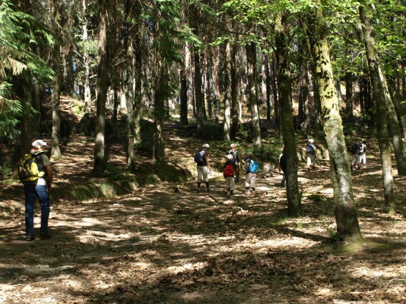 Após esta breve explicação o grupo realizou uma saída de campo, percorrendo o percurso pedestre - Trilho do Mezio - sempre junto à Porta de Mezio, onde tiveram a oportunidade de adquirir e aprofundar conhecimentos sobre a floresta, sua importância para o equilíbrio ambiental assim como para a compreensão/interpretação das relações Homem - Meio Natural.
