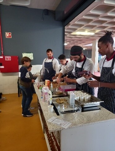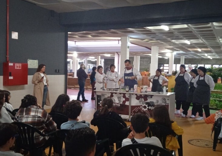 O showcooking ficou a cargo do Chefe de Cozinha da EPRALIMA, dos alunos do curso de cozinha e da nutricionista afeta à equipa de Saúde Escolar do AEV, que lideraram a ação compartilhando dicas valiosas sobre nutrição e preparação de alimentos. Os alunos assistiram à confeção de duas receitas, barrinhas de cereais e pudim de chia e aveia, com ingredientes saudáveis.