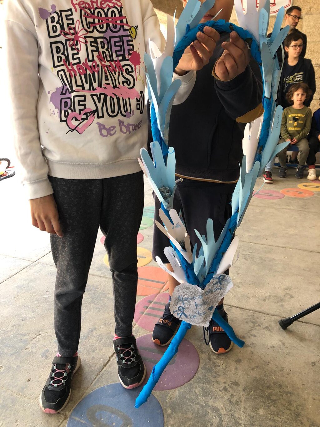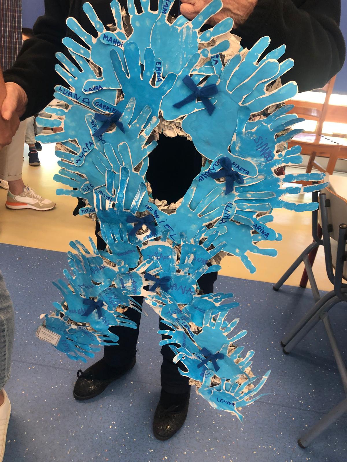 - Dinamização de ações de sensibilização dirigidas a todos/as os/as alunos/as do 4º ano do Agrupamento, tendo sido colocadas fitas azuis nos portões das escolas para assinalar o envolvimento de cada criança nesta causa;