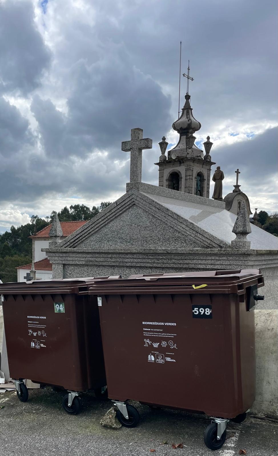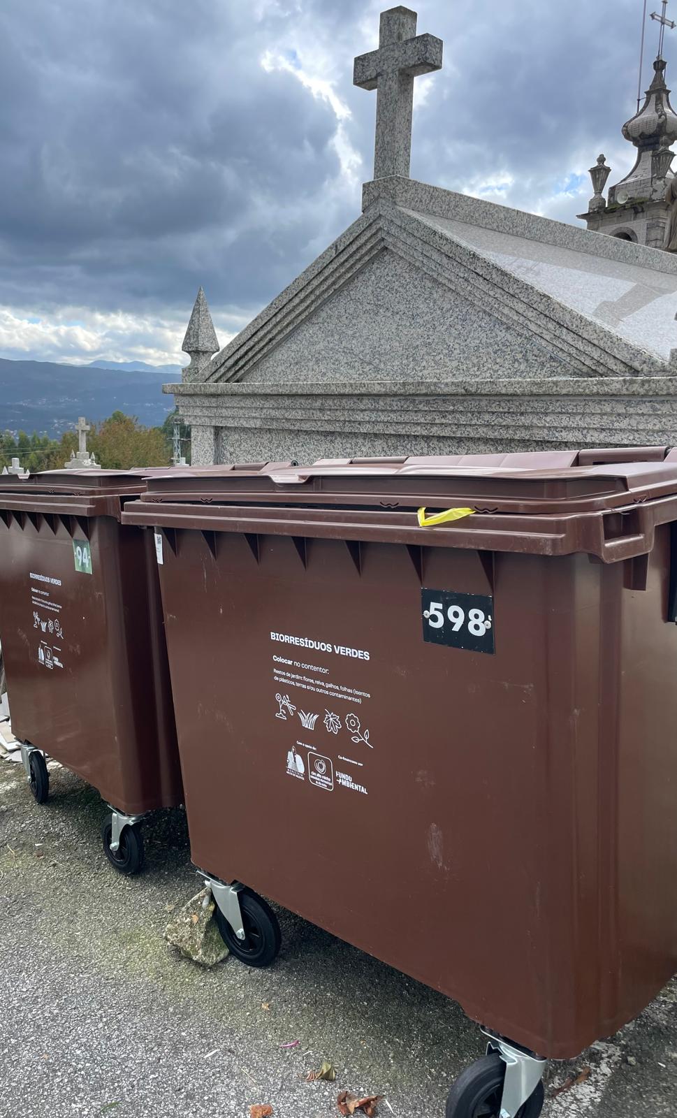 Assim, no âmbito da candidatura ao Fundo Ambiental “Recolha Bio - Apoio à implementação de projetos de recolha seletiva de biorresíduos”, foram adquiridos e instalados 200 novos contentores, de cor castanha, para a recolha seletiva de resíduos verdes em cemitérios, bem como 250 contentores de menor capacidade para reforço da recolha seletiva de biorresíduos no setor alimentar, num valor total de 29.495 € mais IVA.