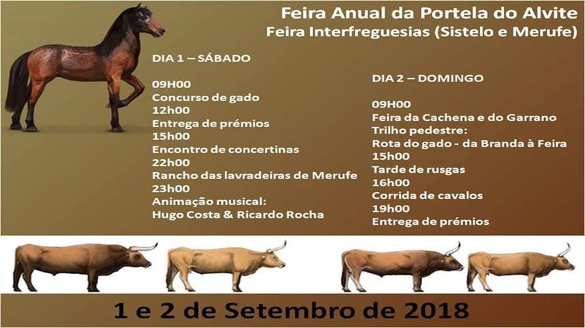 A realizar-se no fim-de-semana, de 1 a 2 de setembro, esta iniciativa, organizada pelas Juntas de Freguesia de Sistelo e Merufe e pela Associação Socio-cultural e Recreativa de Sistelo, com o apoio do Municípios de Arcos de Valdevez e Monção, conta com uma agenda preenchida e dedicada ao mundo rural, com a realização da feira da cachena e do garrano; concurso de gado, corridas de cavalos, encontro de concertinas, atuações de ranchos e rusgas, a realização de um trilho pedestre “Rota do Gado: da branda à feira” e ainda vários momentos musicais.