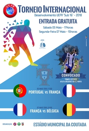 A seleção nacional de futebol (sub16) vai disputar o Torneio Internacional Desenvolvimento UEFA, a realizar entre os dias 05 e 09 de Maio e as seleções de Portugal e França vão medir forças no próximo dia 05 de Maio, às 17h00, no Estádio Municipal da Coutada.