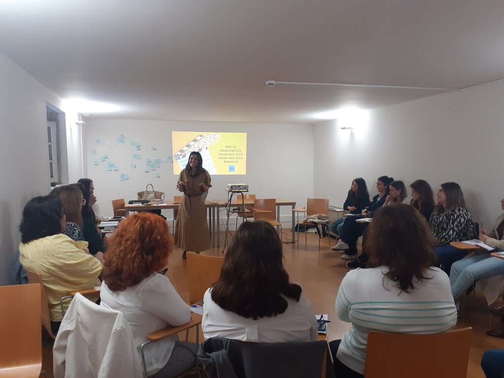 A formação teve como objetivo capacitar os (as) participantes com conhecimentos e estratégias essenciais para oferecer cuidados especializados, atendendo a uma necessidade identificada pelas entidades locais. Na mesma, foram abordadas questões recorrentes entre os/as profissionais, destacando-se as boas práticas para promover a autonomia e o bem-estar da pessoa com demência e formas de incentivar a sua inclusão na comunidade. Reforçou-se a importância da empatia e da personalização do atendimento, proporcionando uma compreensão aprofundada da experiência de viver com demência, com relatos na primeira pessoa. Foram ainda discutidas a importância do acolhimento e abordagens comunicacionais e de intervenção adequadas às necessidades específicas destes pacientes, fortalecendo assim a atuação dos profissionais na área.